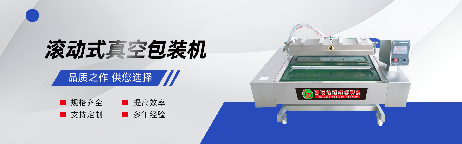 主要產品:康瑞達智能拉伸膜包裝機系列;康瑞達真空包裝機系列。 康瑞達,讓客戶無限強大!康瑞達人堅持有好人品才有好產品,強強聯手,激流勇進,不忘初心,砥礪前行,康瑞達繼續致力于打造—全球智能真空包裝機械客戶放心產品......
